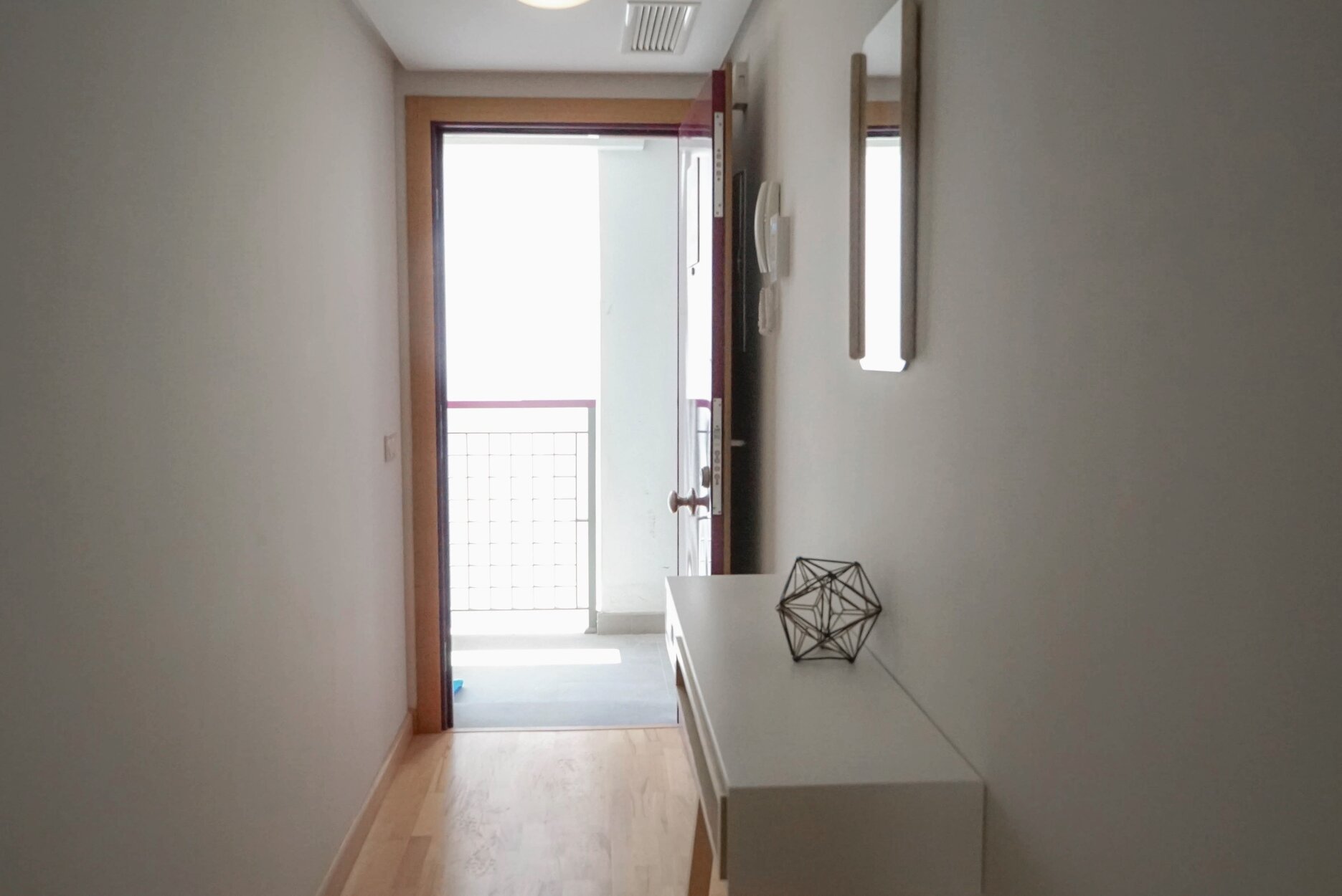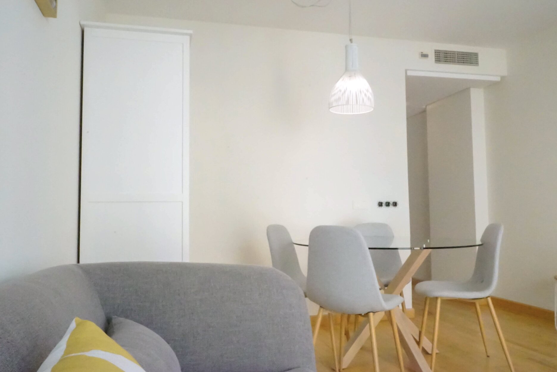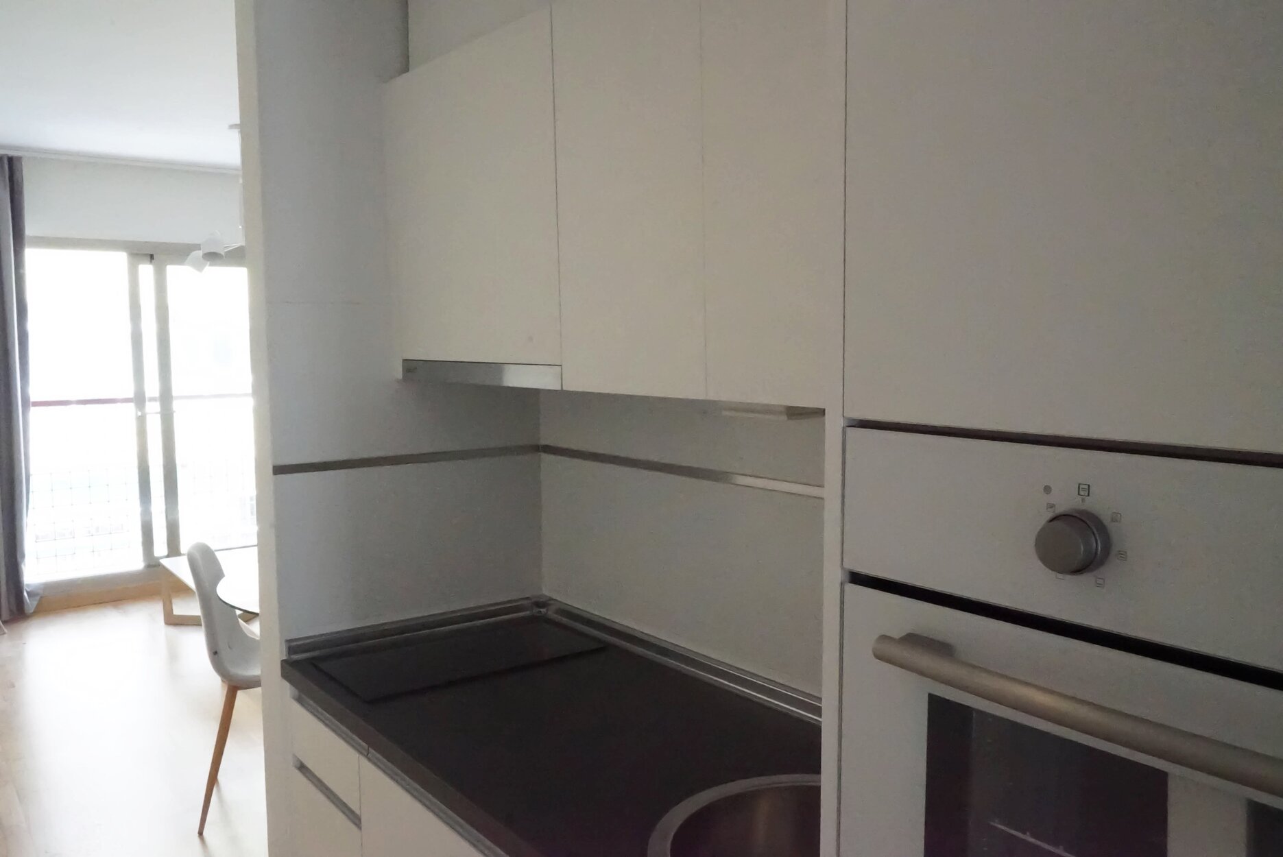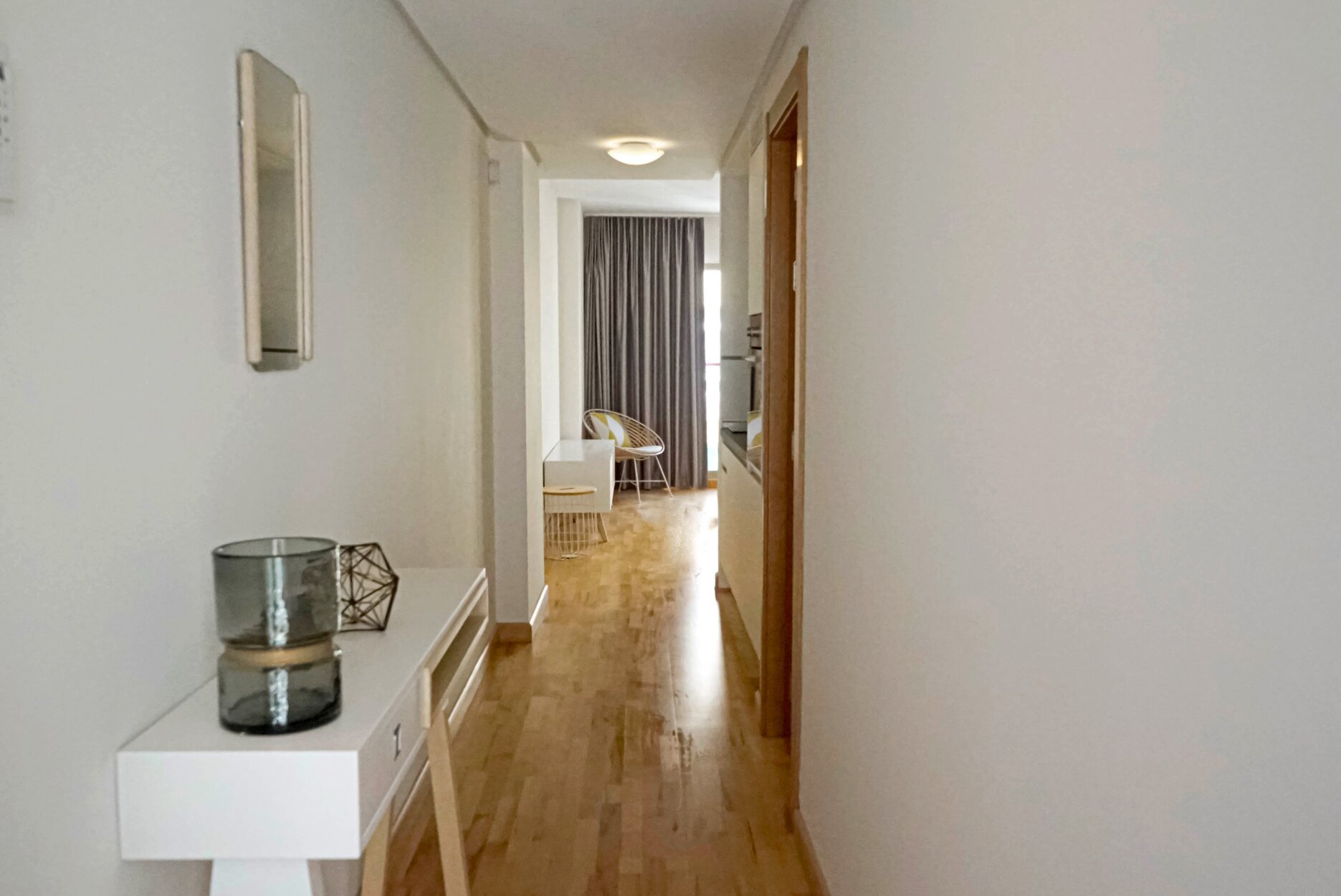 The apartment is delivered in optimal conditions, equipped with air conditioning and with fully equipped kitchen: units, refrigerator, hob, oven, extractor hood integrated into a high cabinet, washer/dryer machine and sink. White finishes.