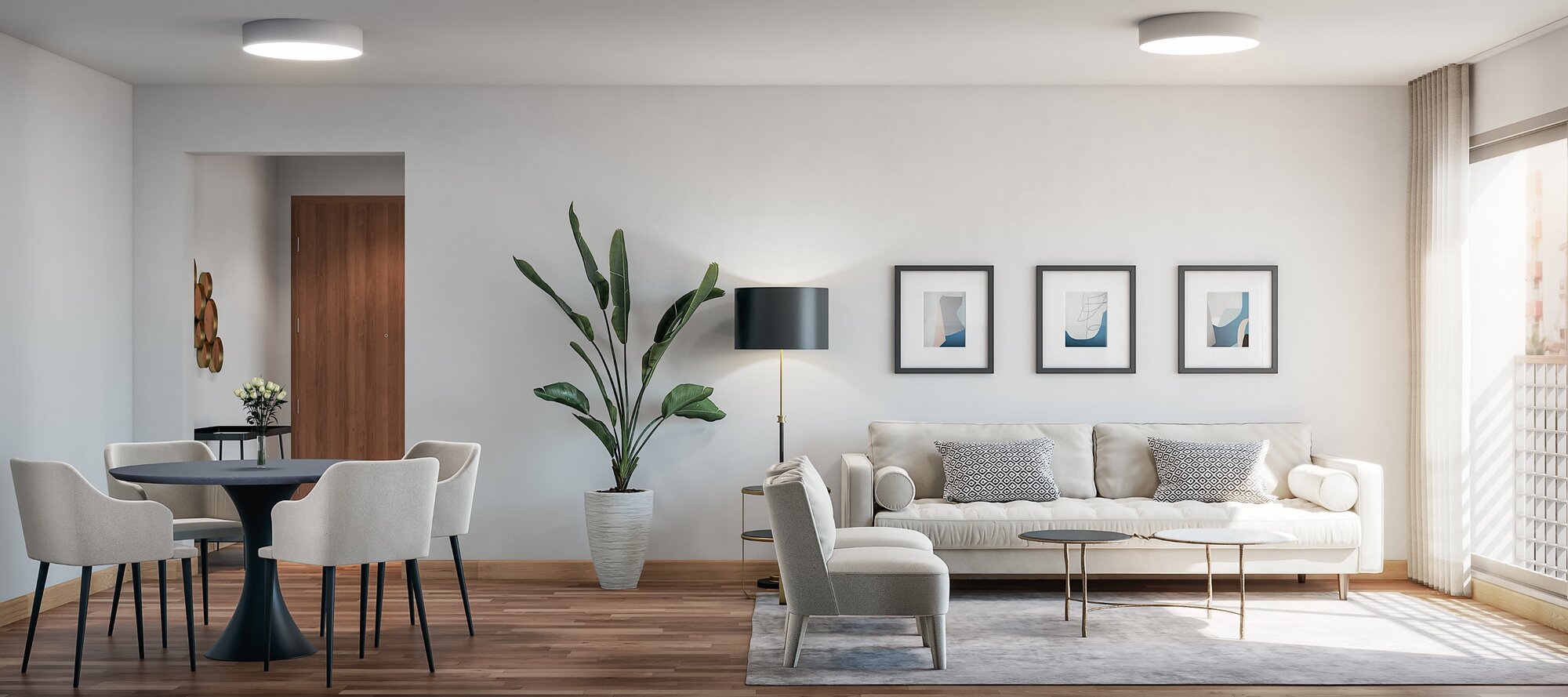 Studios and apartments with 1 and 2 bedrooms, with 1 or 2 bathrooms, living room and kitchen. Homes full of natural light with modern and durable design.
