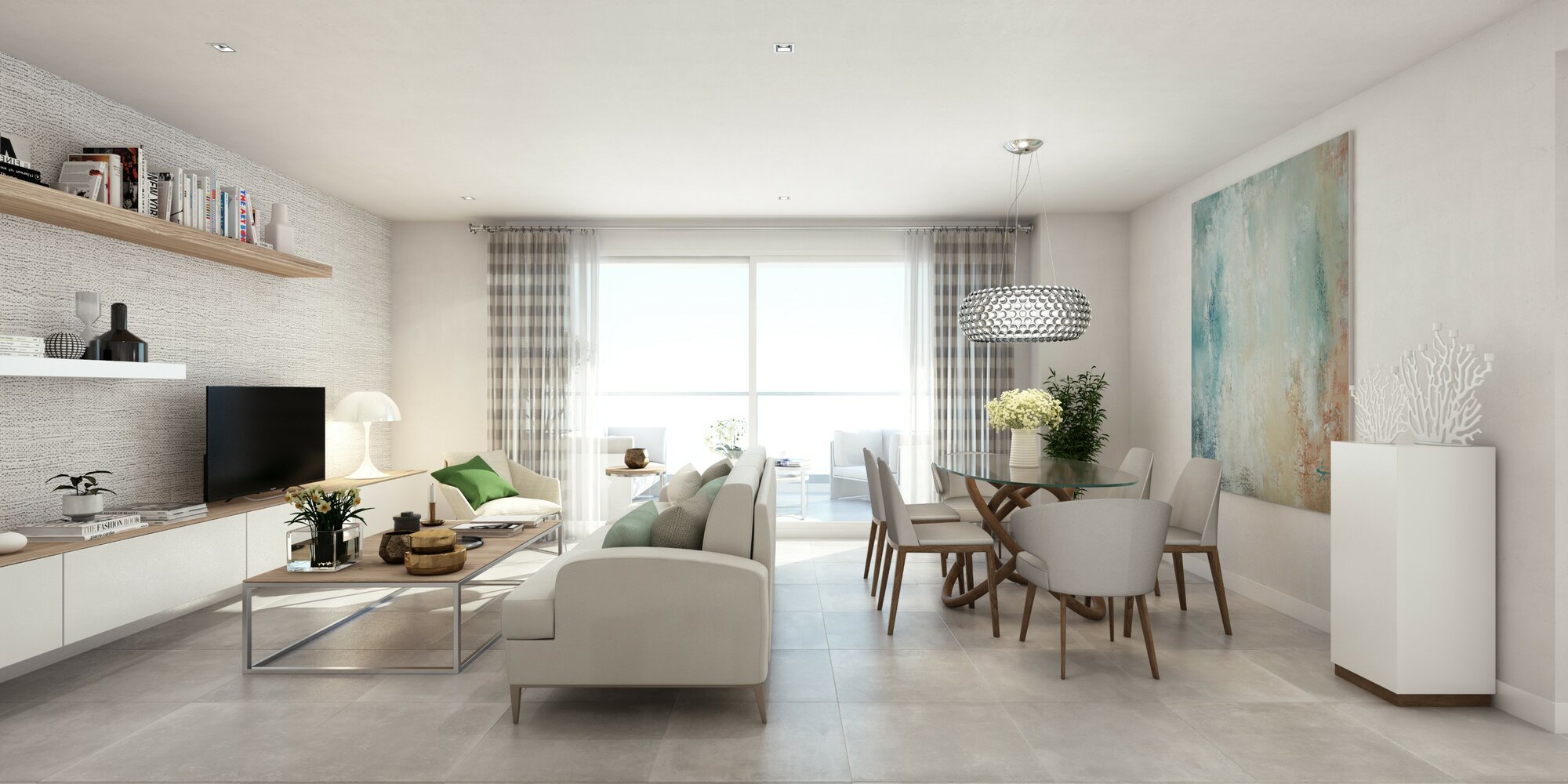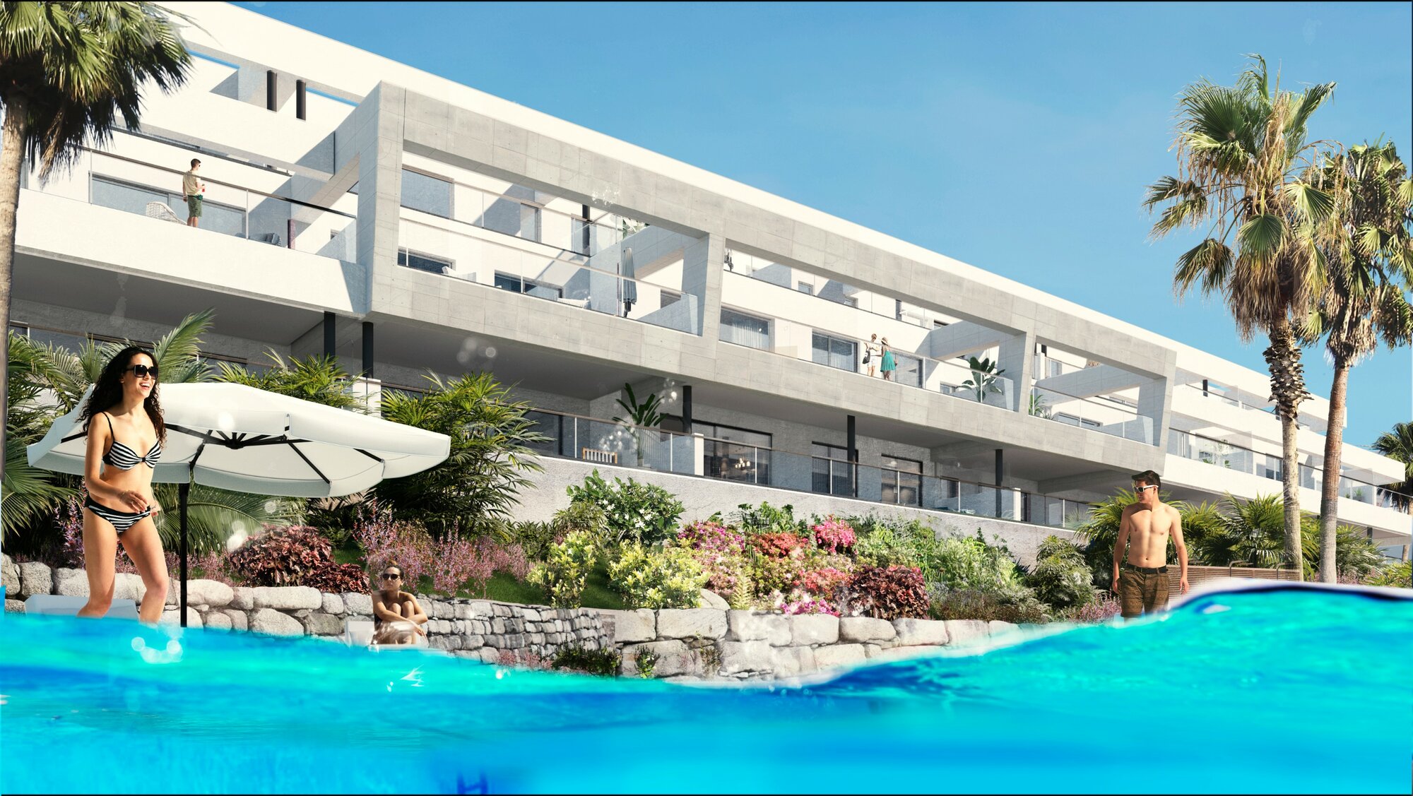 We offer you a development of 104 homes with 2 and 3 bedrooms and garage space and storeroom. A complex where you will be able to enjoy a home with spacious terraces with sea views and common areas with gardened areas, a pool for both adults and children, a social-gourmet hall and a gymnasium, for filling up every moment of the day.