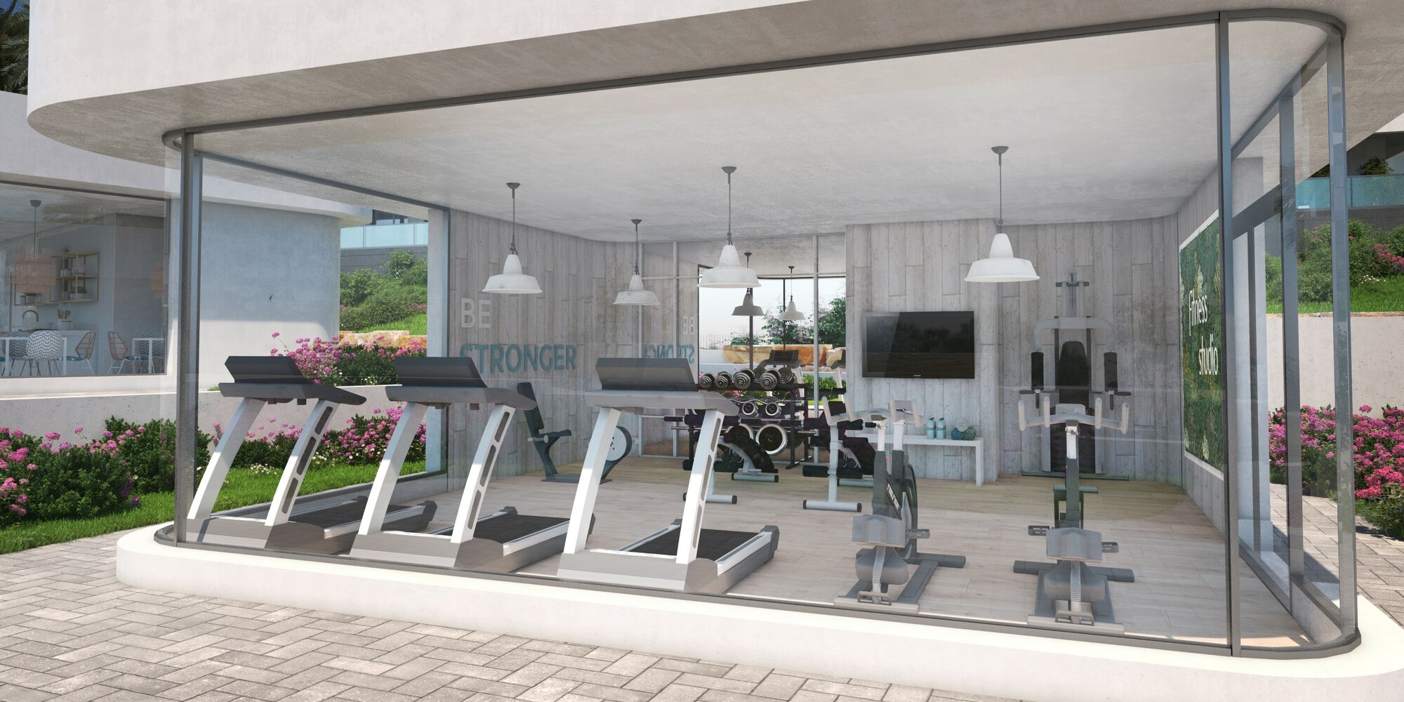 The indoor and outdoor gyms are private spaces where you can keep fit and lead a healthy lifestyle without leaving home. You will have a space that is fully equipped and designed for you to do physical activity 365 days a year.
