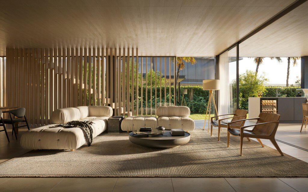 En el interior, la villa ofrece una sofisticación refinada y un diseño funcional a partes iguales. Una espaciosa distribución diáfana conecta a la perfección la cocina, el salón y el comedor, con puertas de cristal de suelo a techo que aportan luz natural y crean una transición fluida hacia el exterior. Toda la planta superior está dedicada a una lujosa suite principal, con vestidor y un suntuoso baño en suite, mientras que los dormitorios de invitados adicionales están cuidadosamente diseñados para ofrecer la máxima comodidad y privacidad.