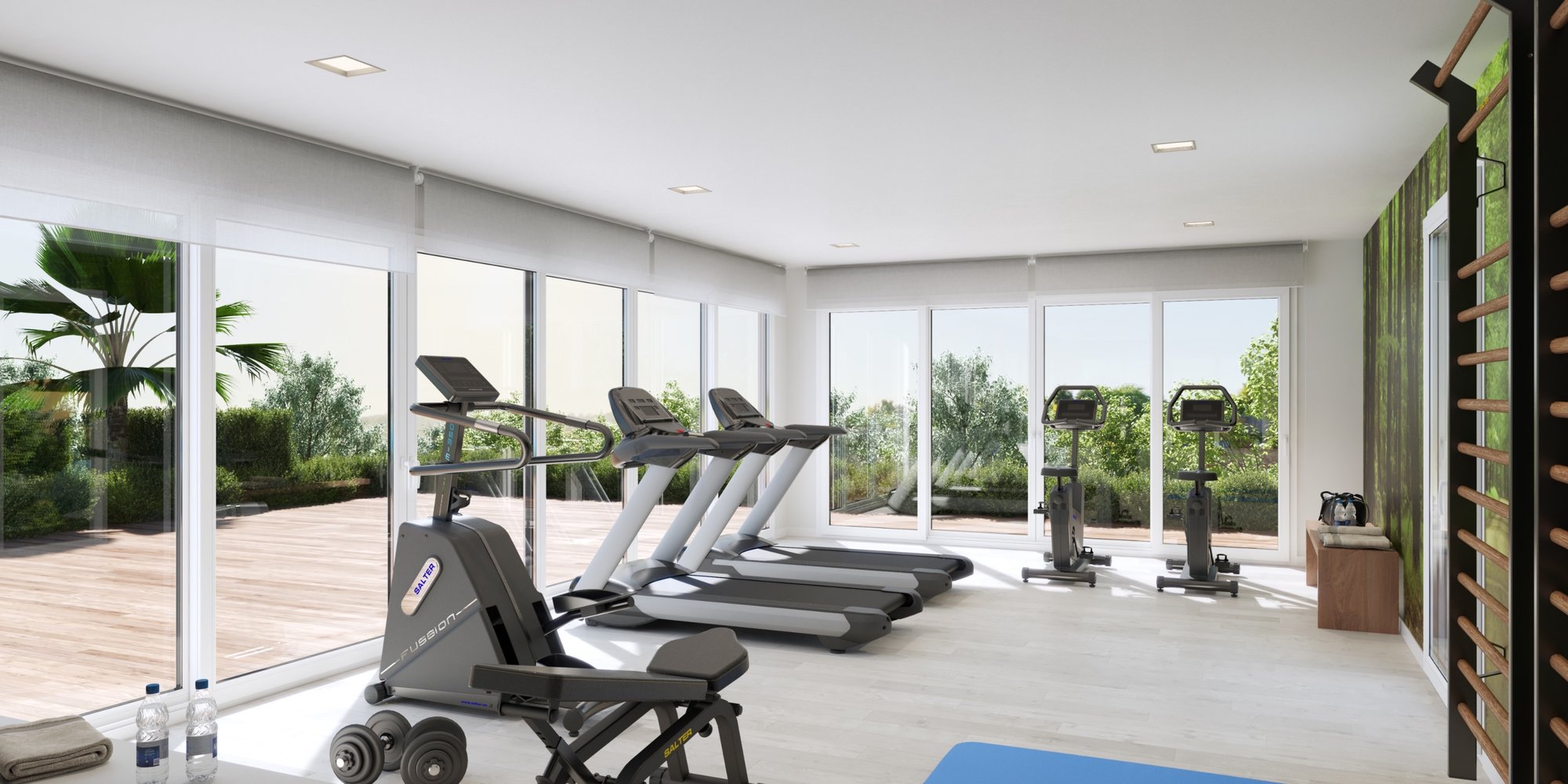 The complex consists of 166 apartments and penthouses with 2 and 3 bedrooms, all with garage parking space and storage room included in the price. This exclusive project has more than 13,000 m2 of common areas, where you can relax in the spa area with Turkish bath and sauna, swim in the heated indoor pool or one of the three outdoor pools, start or end the day in the gym or play a game on the padel court. It also has a social room where you can meet with your friends or family, putting green, urban vegetable garden and much more!