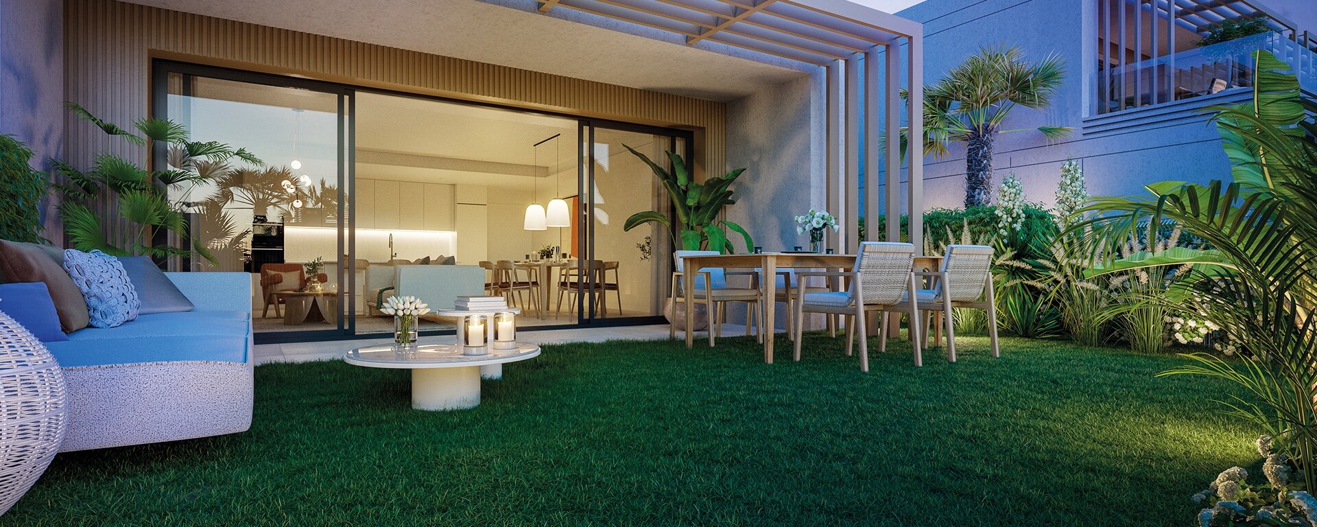 Each of the 80 homes seeks to provide a perfect blend of design and comfort. Communal areas and spacious home interiors have been designed to make the most of ample natural light, and to offer an exceptionally attractive product that is hard to match. We want it to become your special place in the world. Spacious living areas have been designed with great attention to detail. Picture windows, large-format porcelain floor tiles and the orientation of the house allow for maximum use of natural light at any time of day. Not to mention magnificent terraces where you can enjoy stunning sunsets. Kitchens have been designed as an integral part of the living area to create a bright and spacious living space for all-day use. Specifications reflect the quality you would expect from such a high-quality project, with quartz countertops, fitted appliances and integrated LED lights to provide warmth and sophistication. In the bathrooms the elegance of large-format porcelain tiles reflects our overall commitment to quality and design. All this while never losing sight of functionality, low energy consumption and specifications that meet the criteria that are an integral part of this development: sustainability, practicality and comfort.
