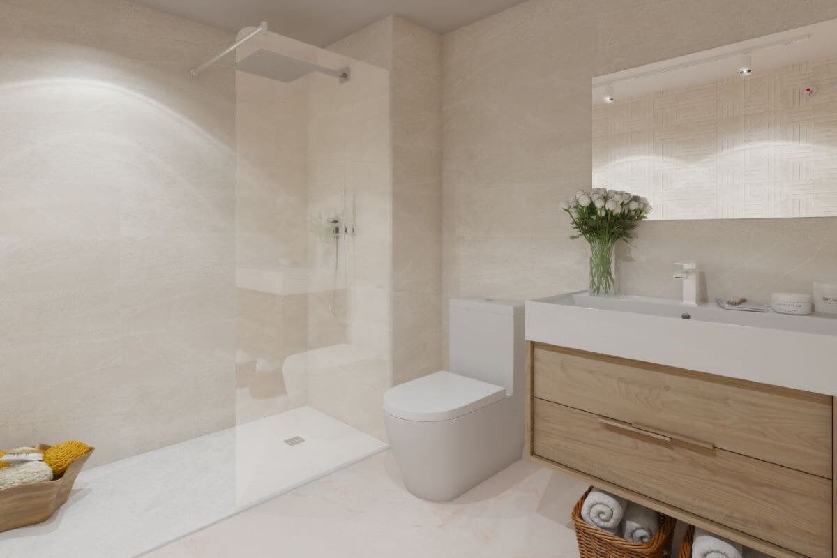 This beautiful complex is on the New Golden Mile of Estepona, a sought-after area with a wide variety of services and facilities. It sits on the 18-hole course Estepona Golf, only 3 km from the beach and with stunning panoramic views of the coastline. The residential is well connected by road, just 20 minutes from Marbella and 60 minutes from Malaga Airport along the A7 motorway. Gibraltar is also only a 40-minute drive. This new development enjoys a prime location within a few minutes’ walk to the clubhouse, only 100 meters. The best places for fun and leisure, sunny beaches, and amenities are nearby. Nowadays, Estepona West is one of the most attractive areas of the Costa del Sol, with many new residential projects and infrastructure springing up to enrich this region with a bright future.