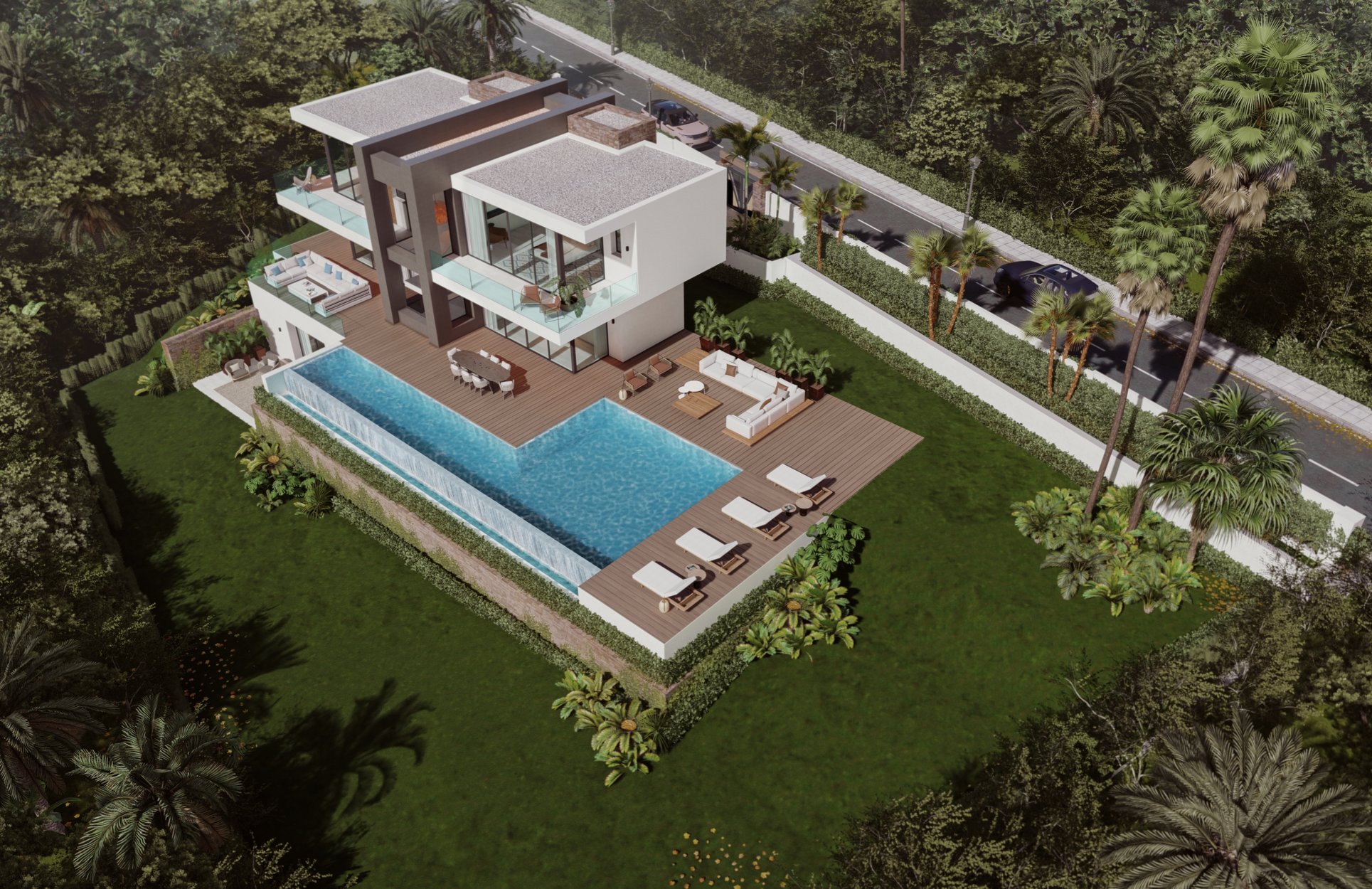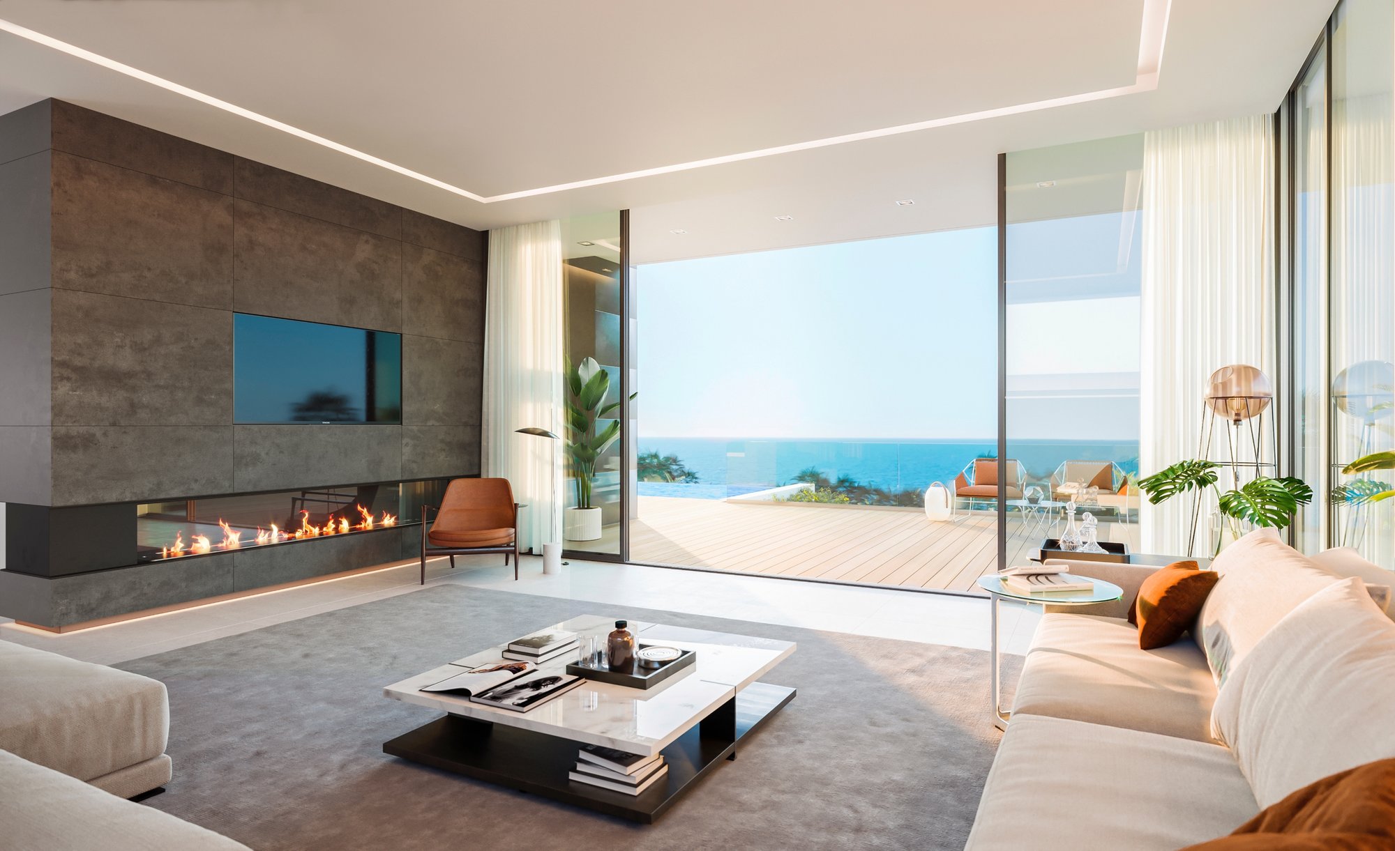 These homes boast spectacular panoramic sea and coastal views. Built to the highest of standards with quality materials. This villa features solar panels, ceramic floors, and quality fixtures and fittings. Not to mention smart electrics. An open plan design, the villa is set in a substantial plot with landscaped gardens and private infinity pool. Optional sunken dining area. The property is entered through automatic gates. A bright and spacious open living room and dining area with bespoke fireplace, floor to ceiling windows letting in maximum natural light. 4 double bedrooms all with floor to ceiling windows, all en suite and built in wardrobes. Luxury bathrooms. These fabulous modern homes also offer a gym and fitness area as well a wine cellar.