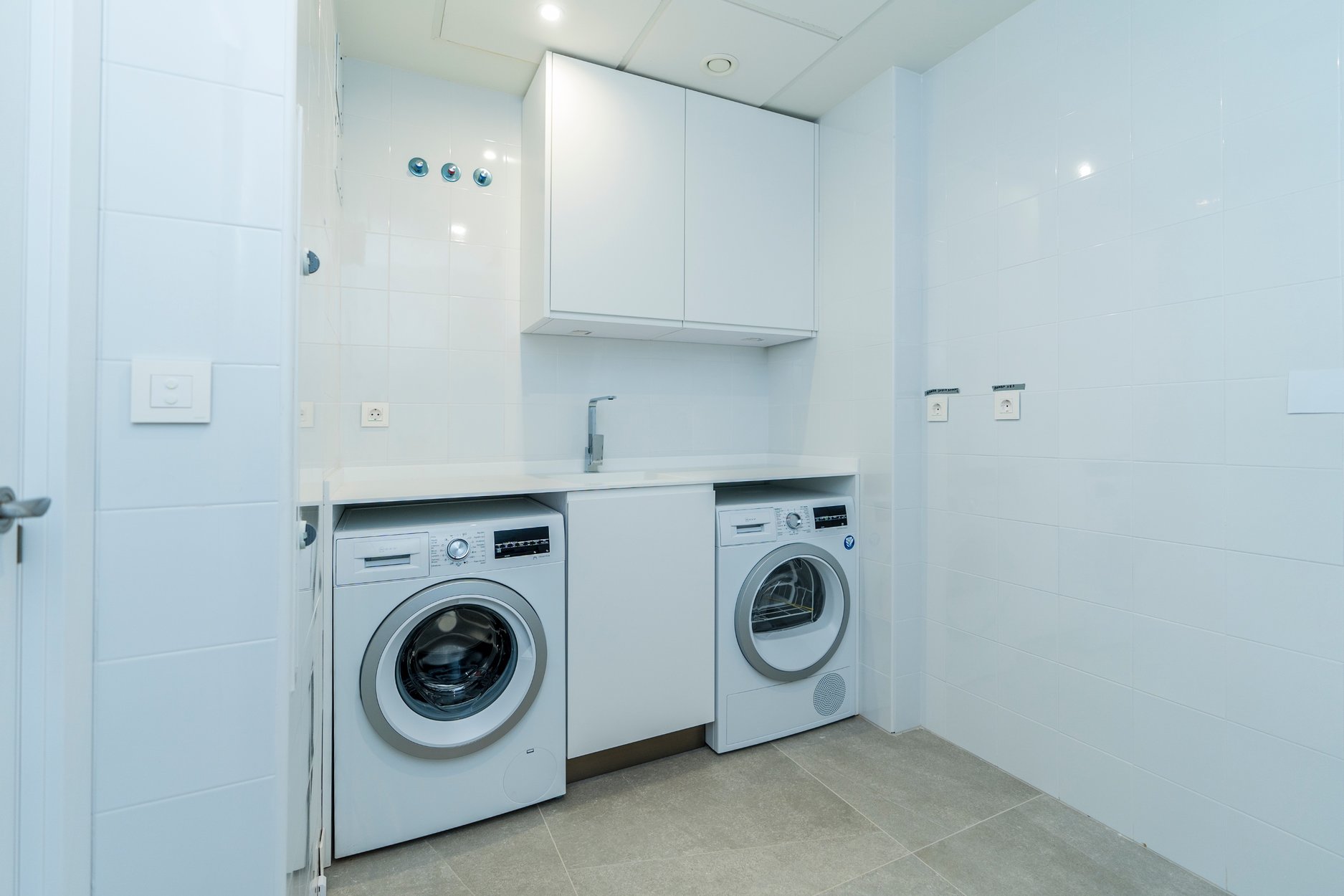 The kitchen has been perfectly equipped with NEFF appliances. There is also a possibility to design the kitchen according to your own taste, with a wide range of choices and high-quality finish. The residential area offers absolute security and serenity, and surveillance cameras are installed to ensure the safety of your home
