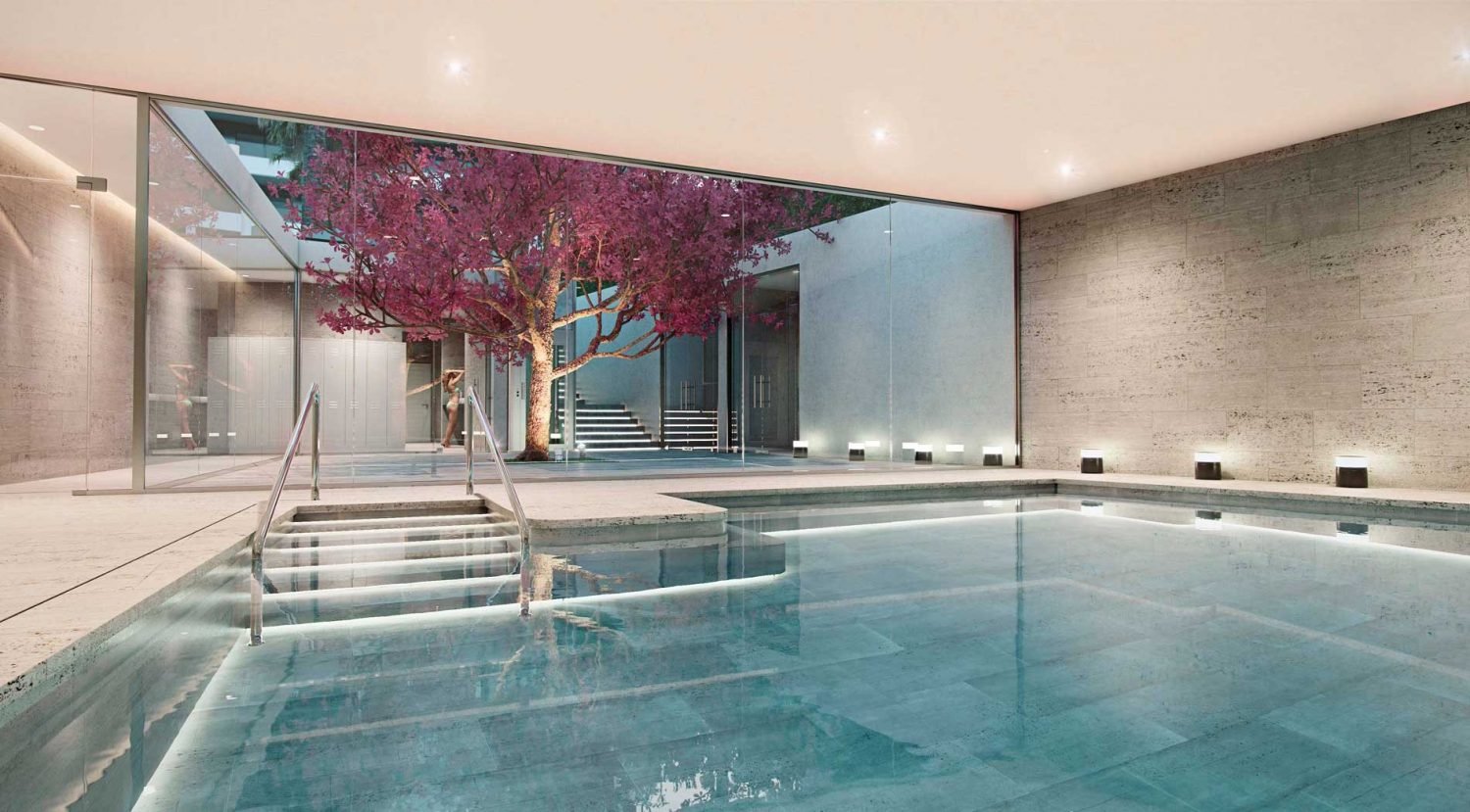 The development will have a plethora of features including outdoor pools and indoor heated pool, a jogging circuit within the residential community, 24 hour security and fully equipped gym with Sauna and Turkish Bath. The community will also have a Multipurpose room, all within its unique glass facade.