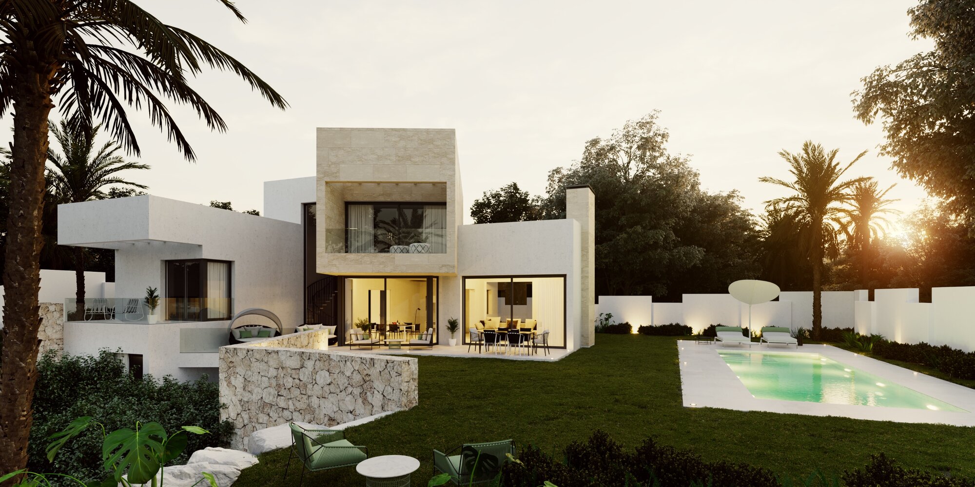 Properties have been created to meet the demands of a home that combines stylish design with the highest quality materials and the latest technologies. Each villa offers 4 bedrooms en suite, fully fitted kitchen with Siemens appliances, air conditioning and underfloor heating, domestics, interior doors 2,40, an impressive infinity pool and private garden, and much more.