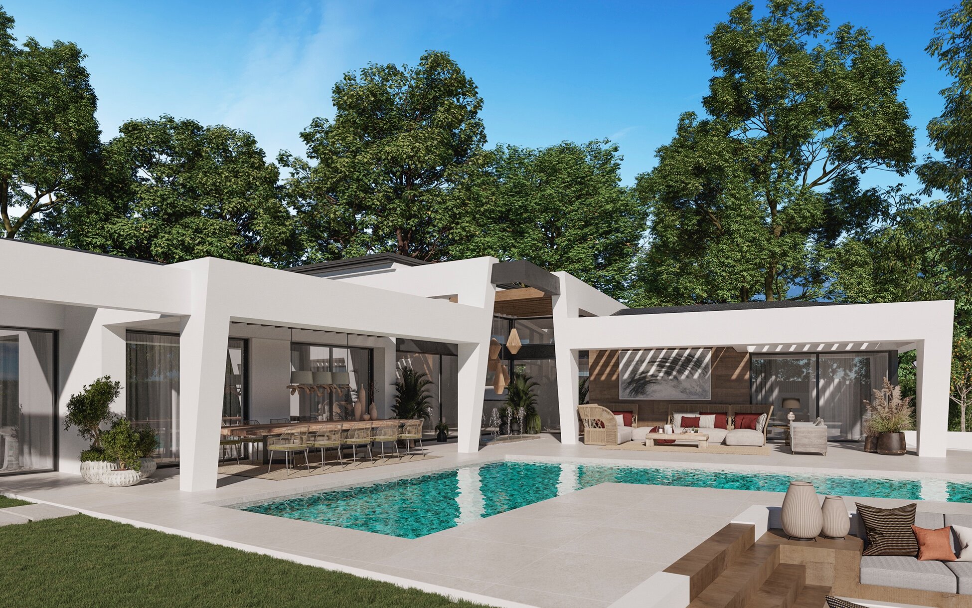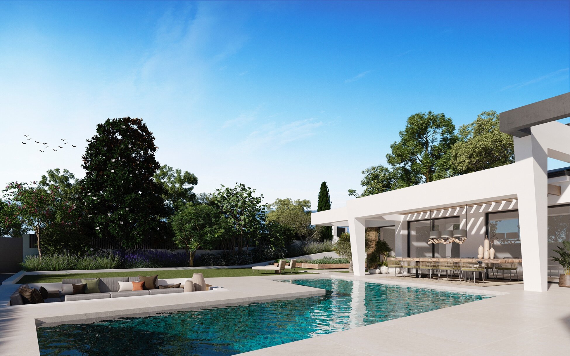 The villas combines luxury and nature in an exceptional environment. Three unique villas built on one floor and designed to enjoy the Mediterranean lifestyle in a relaxed way, imagine melting into the sun’s rays, relaxing in the chill-out area by the pool, picking fresh vegetables from your own garden or letting you rock in a sunbed at sunset on a lazy summer afternoon.