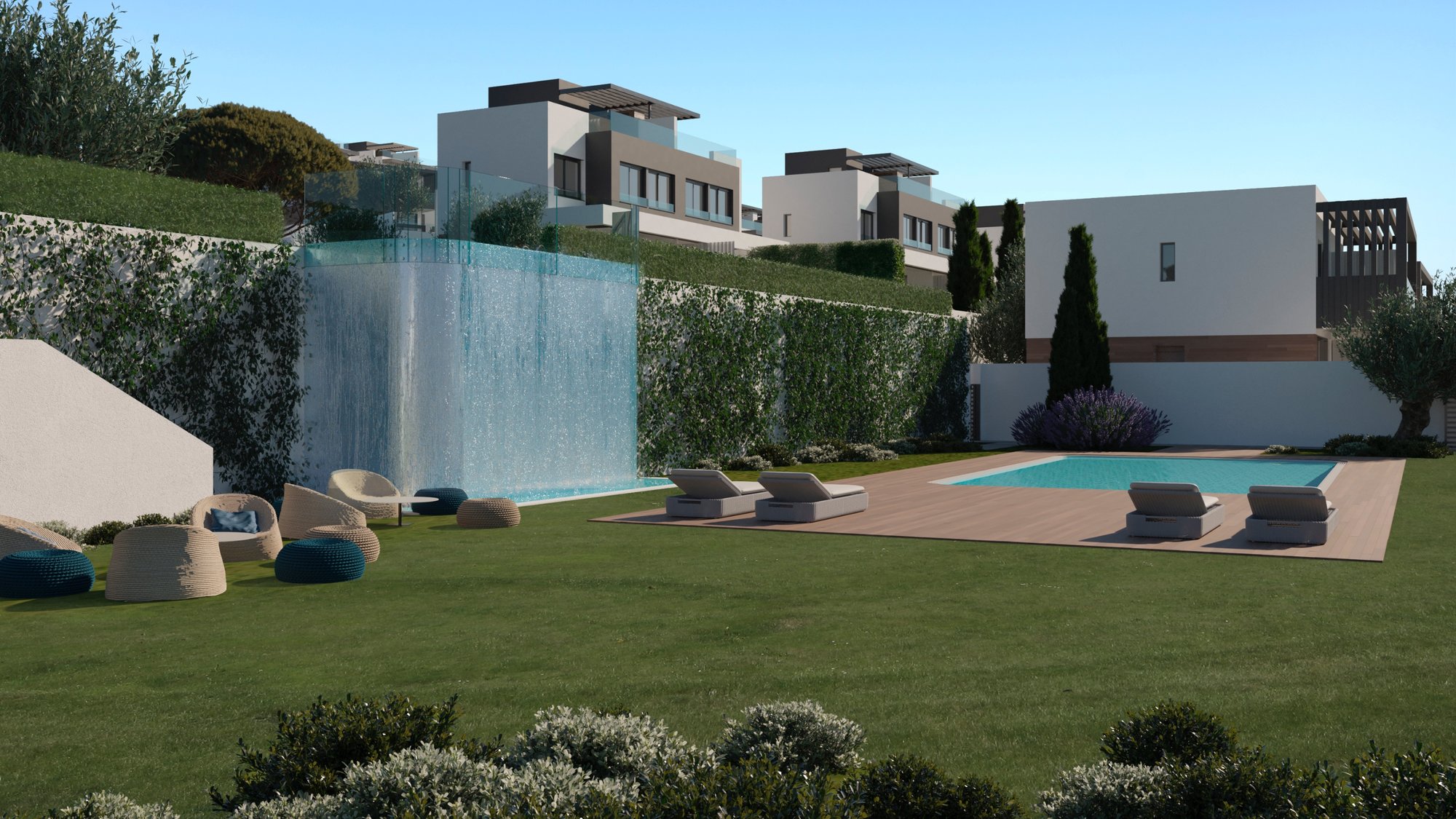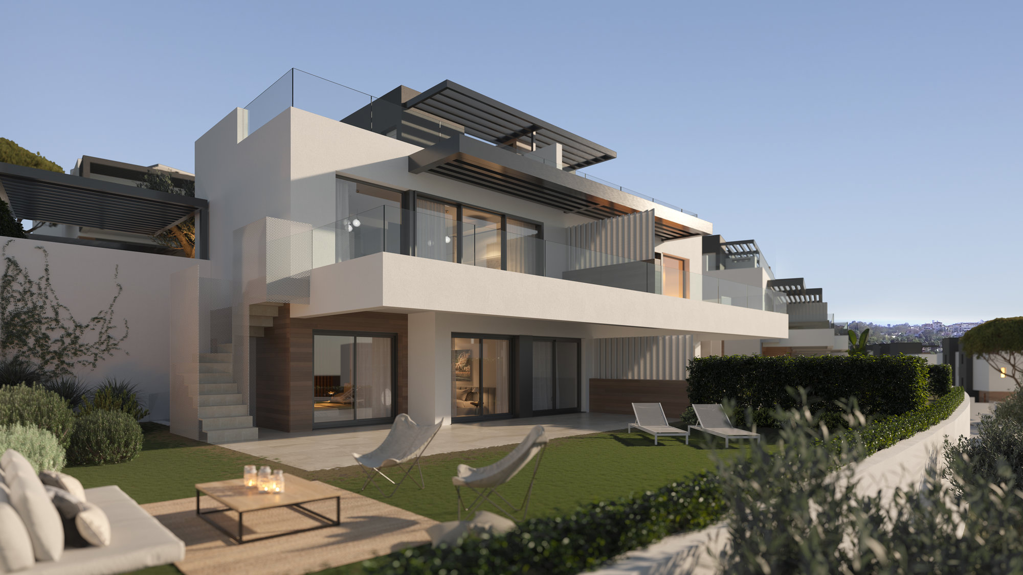 Cosmopolitan style houses, with a sense of freedom. You will have the possibility to customize your bathrooms and also turn a 3 bedroom property to an immense 2 bedrooms. Take the chance of relaxing in your wonderful garden while enjoying the typical sunny climate of the Costa del Sol.