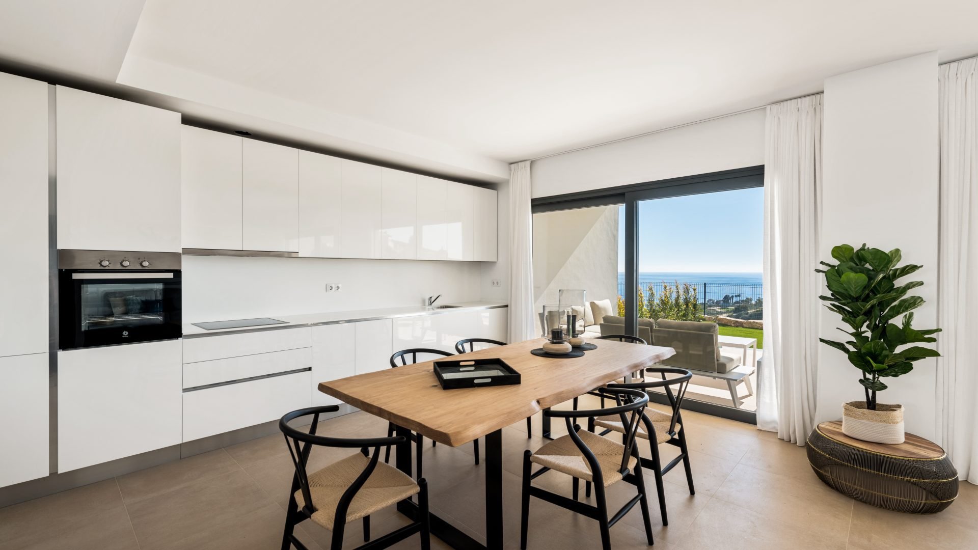 Absolutely stunning sea views will greet you from the development in Manilva. A chic development of just 46, apartments and penthouses, some with private solarium or terraces and some with generous gardens, it is just a few minutes away from the blue flag beaches of Manilva as well as some of the finest golf courses in the area including the prestigious Valderrama in Sotogrande.